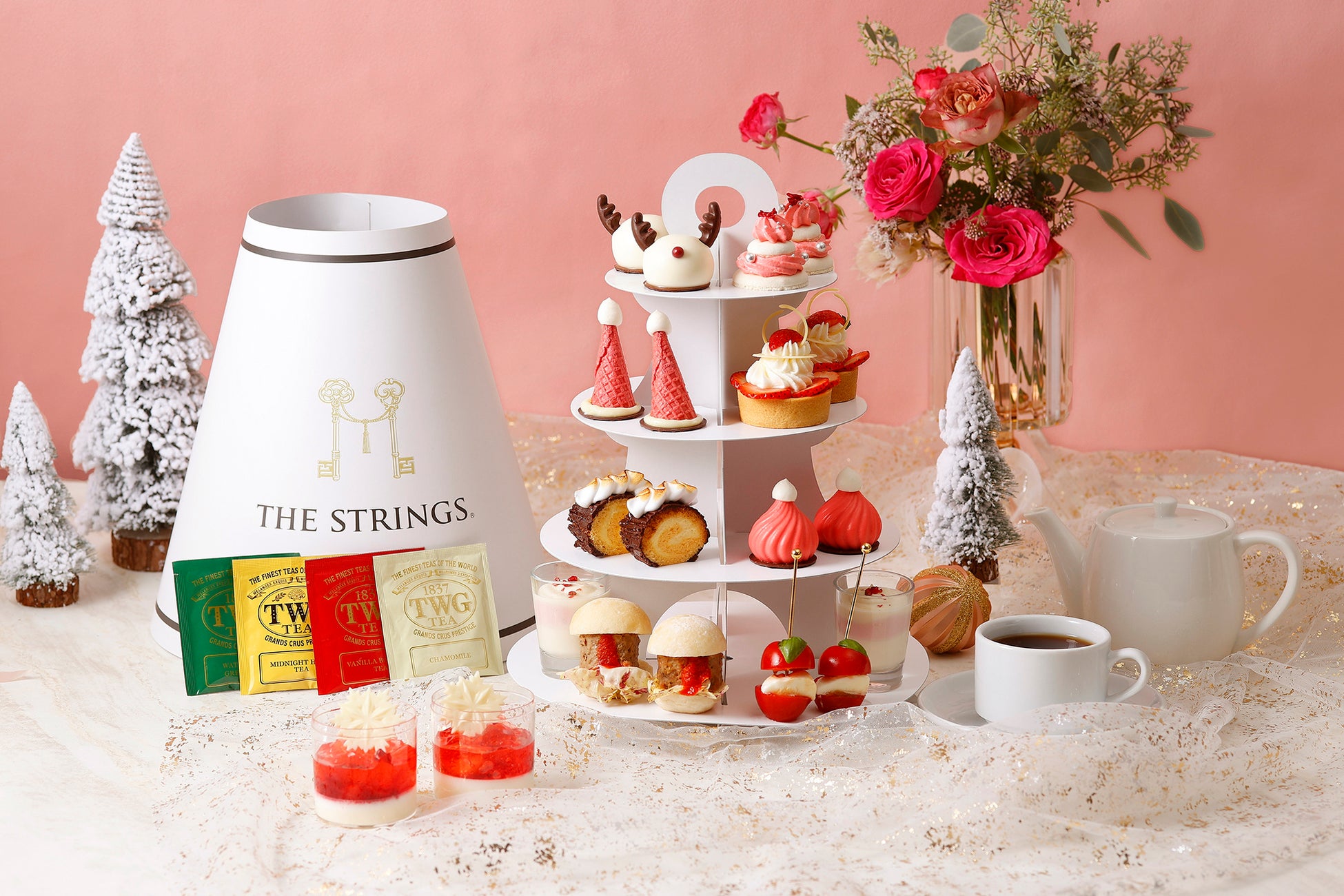 期間中、ザ ストリングス 表参道館内は、全体がホワイトを基調としたクリスマスデコレーションに包まれます。ピンクフルでフォトジェニックな愛らしいアフタヌーンティーとともにジョイフルなホリデーシーズンをお過ごしください。