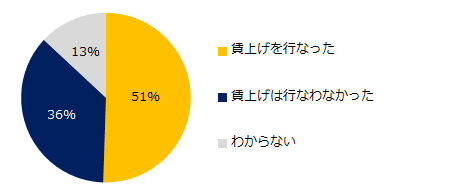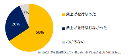 「2023年4月以降、貴社では賃上げを行ないましたか?」と質問すると、正社員の賃上げを行なった企業は66%、アルバイト・パートの賃上げを行なった企業は51%でした。