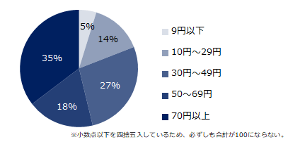 「正社員の賃上げを行なった」と回答した企業に”月給”の上昇幅を伺うと、最も多いのは「5,000円~9,999円」(37%)でした。「アルバイト・パートの賃上げを行なった」と回答した企業に”時給”の上昇幅を伺うと、「70円以上」(35%)が最多でした。