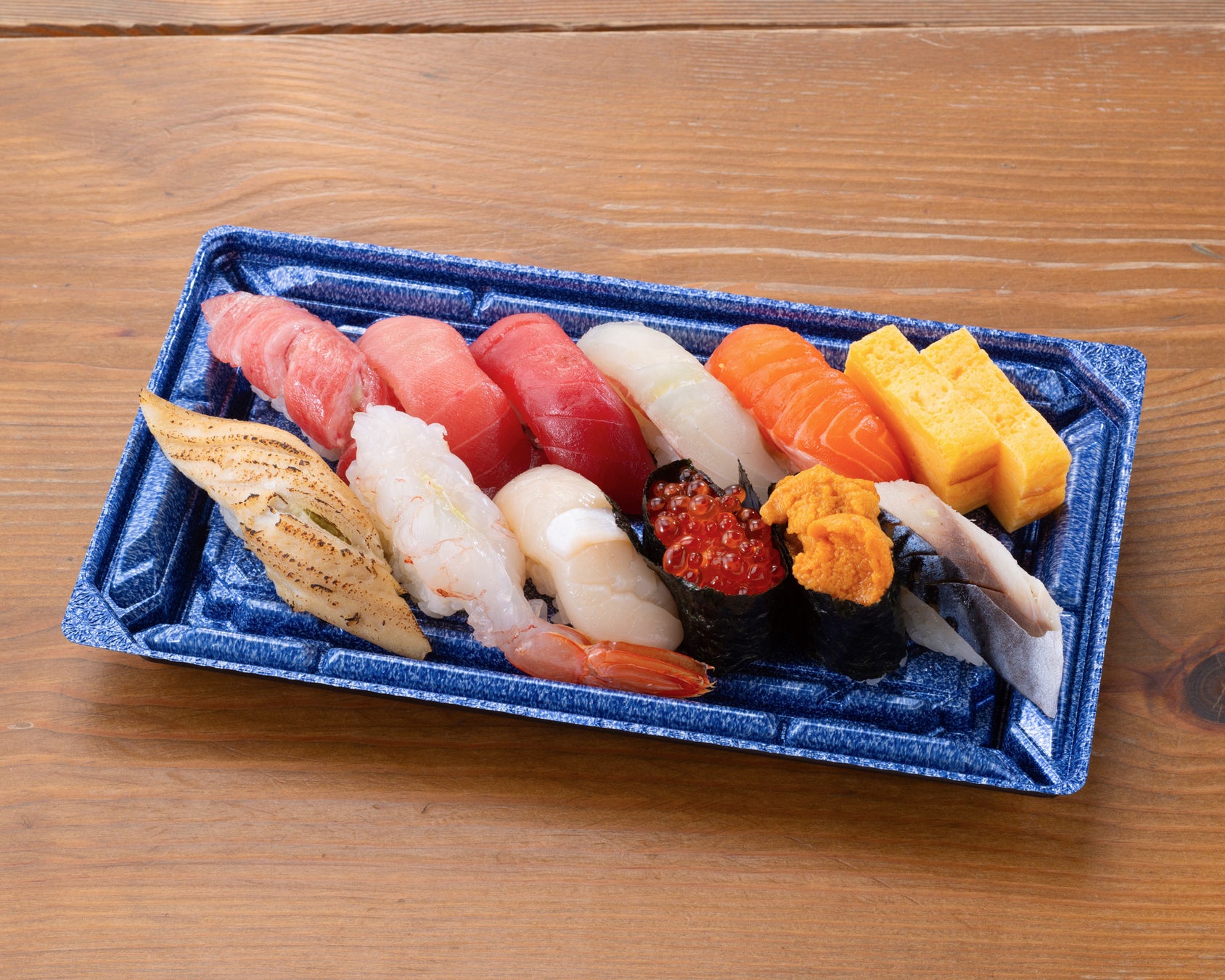 人気の新鮮なネタをふんだんに盛り合わせました。〈雪〉は大トロ、中トロ、赤身入り、〈月〉は中トロ、赤身入りとなっております。
