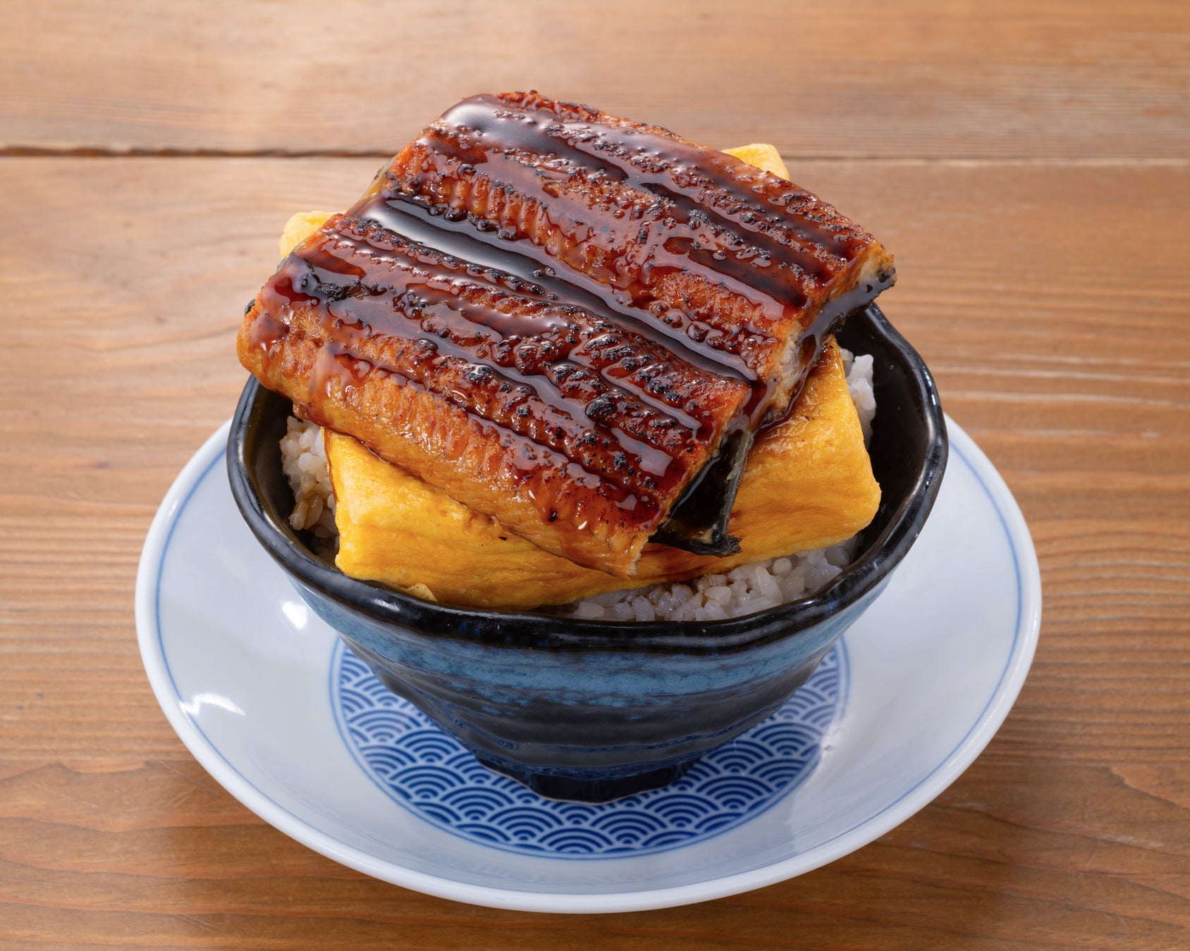 ふわふわの極厚の玉子焼きの上に、ふっくらうなぎの蒲焼きをのせました。