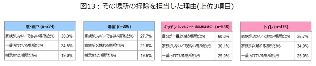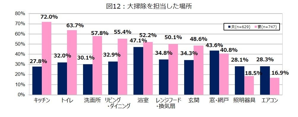 ・夫は家族がしない/できない「窓・網戸」「浴室」を、妻は自分が一番よく使う「キッチン」、家族がしない/できない「トイレ」を担当。