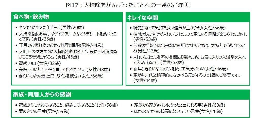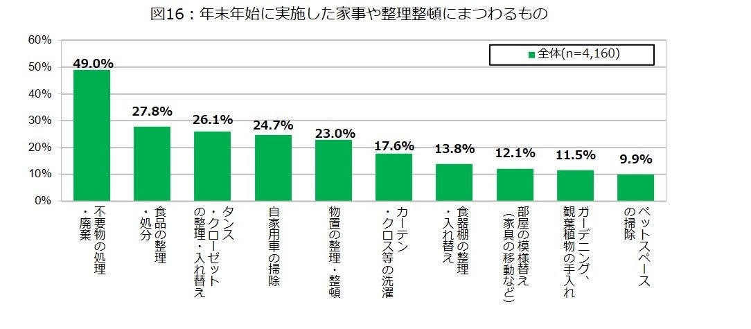 ・年末年始に実施した家事や整理整頓にまつわるもの。