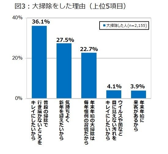 ・大掃除をする・しない理由には、いずれも「普段掃除」が大きく関係。