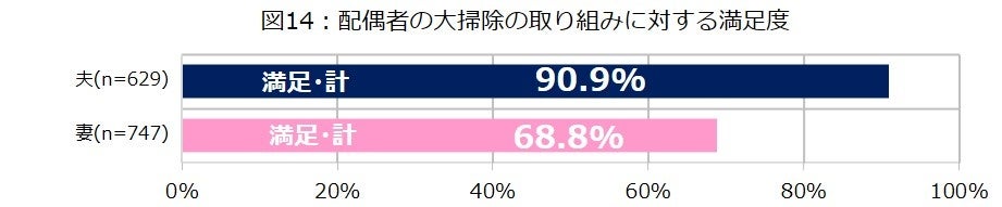 ・夫婦間の大掃除取り組み満足度は、20ポイント以上のギャップが。