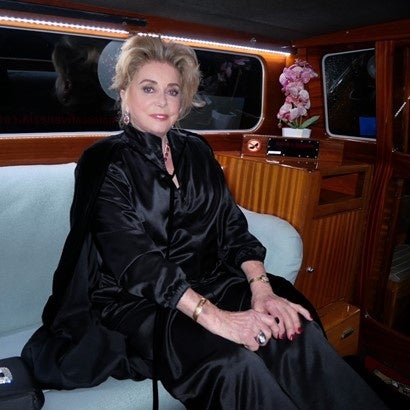 第79回ベネチア国際映画祭に登場した、女優のカトリーヌ・ドヌーヴ。マリア・グラツィア・キウリによるディオール オートクチュール コレクションより、ブラックベルベットのケープを纏い登場しました。