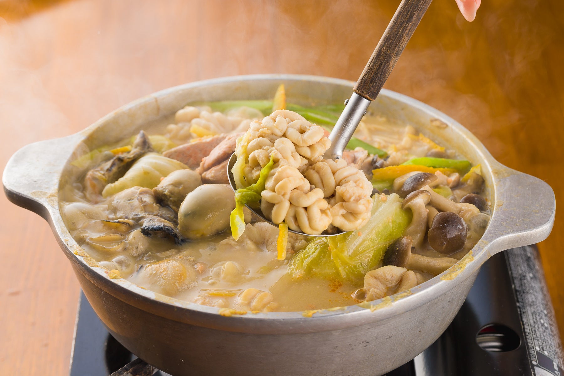 また、使用する「あん肝・白子・牡蠣」は、信頼している卸業者さまより毎日入荷しており、どれもひとつひとつが大きく、食べ応えも抜群です。数種類の味噌をブレンドしたコクたっぷりのスープの中で、あん肝・白子・牡蠣の旨味が三位一体となり濃厚でクリーミーな味わいに。辛口の日本酒との相性も抜群です。