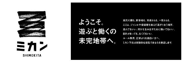 ミカン下北は「ようこそ。遊ぶと働くの未完地帯へ。」というプロジェクトコンセプトの下、下北沢の自由で雑多な空気の中で、多様な人々がジャンルや価値観を超えて混ざり合い、予想もつかない何かが生まれる場所を目指し、2022年3月に開業しました。施設名称である「ミカン下北」には、多様な文化が交差し、絶えず自由に編集され、変わり続ける、つまり“常に未完である”ことに下北沢の普遍的な魅力を見出し、未完ゆえに生まれる新たな実験や挑戦を促す想いが込められています。