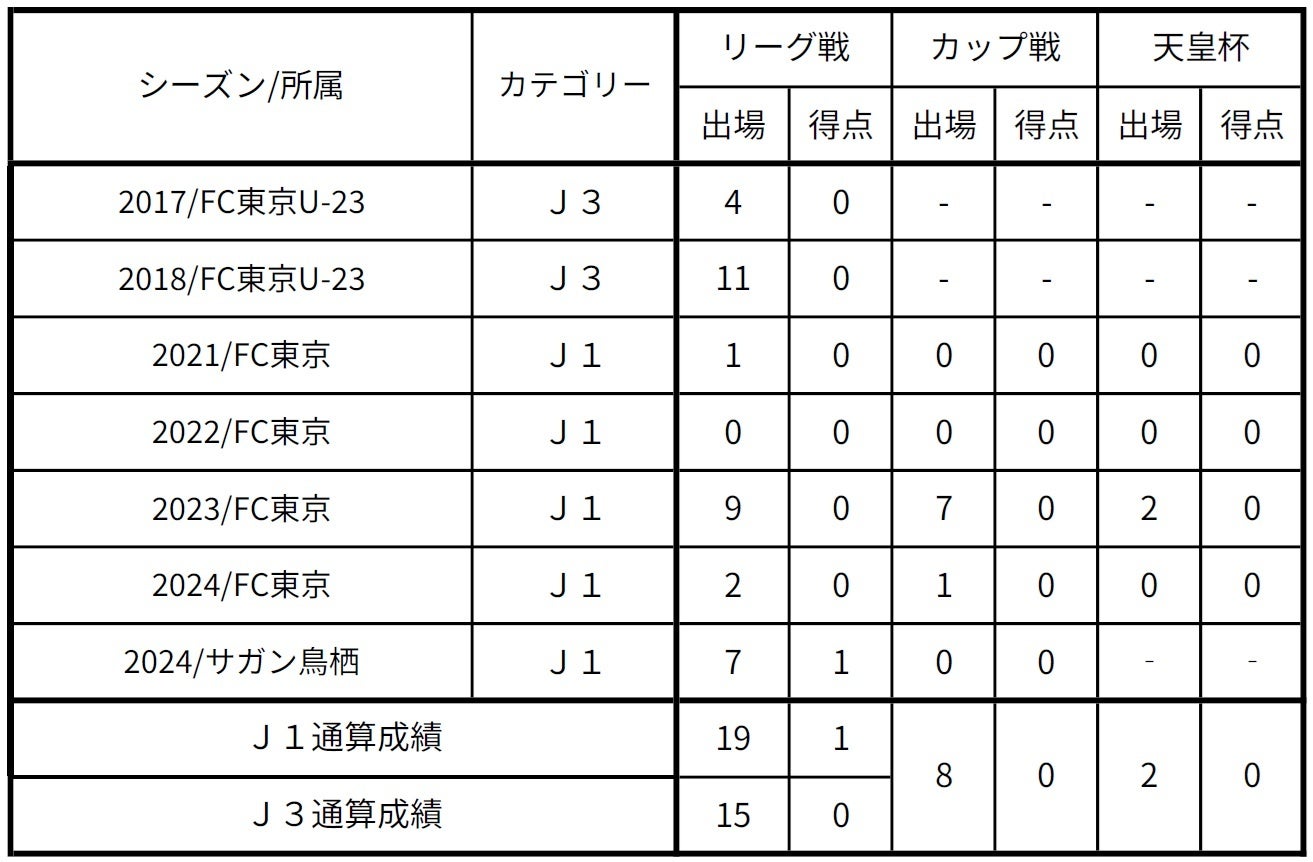 ※2021年順天堂大学所属時に天皇杯3試合出場1得点を記録