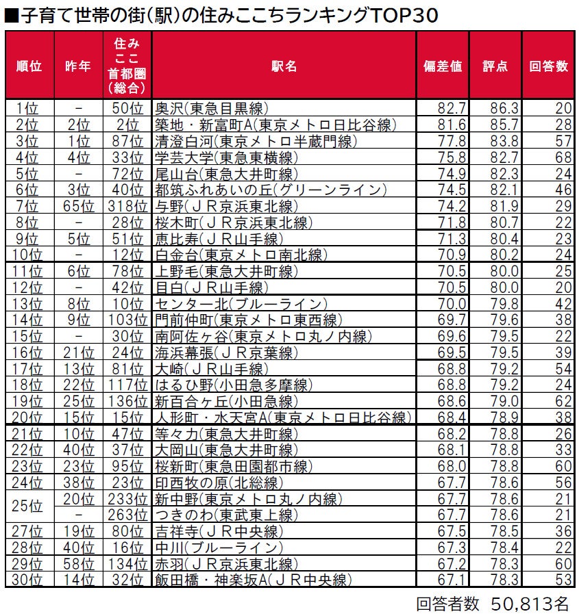 - 子育て世帯の街の住みここち(駅)ランキング〈1位~50位〉