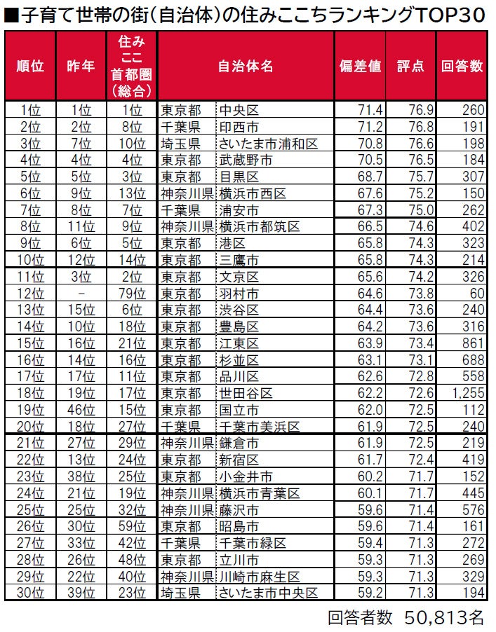 - 子育て世帯の街の住みここち(自治体)ランキング〈1位~50位〉