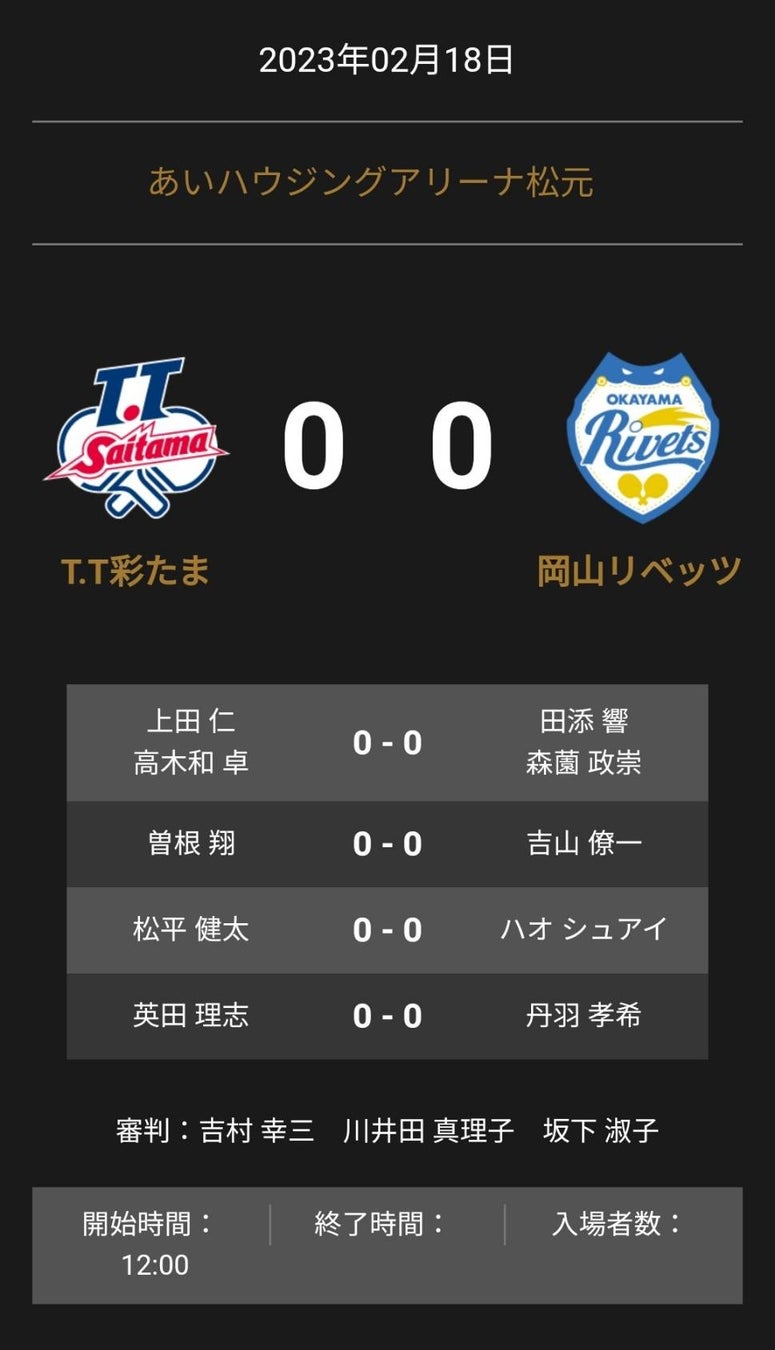 ノジマTリーグ 2022-2023シーズン 公式戦 2月18日開催 T.T彩たま vs 岡山リベッツ 対戦オーダー発表