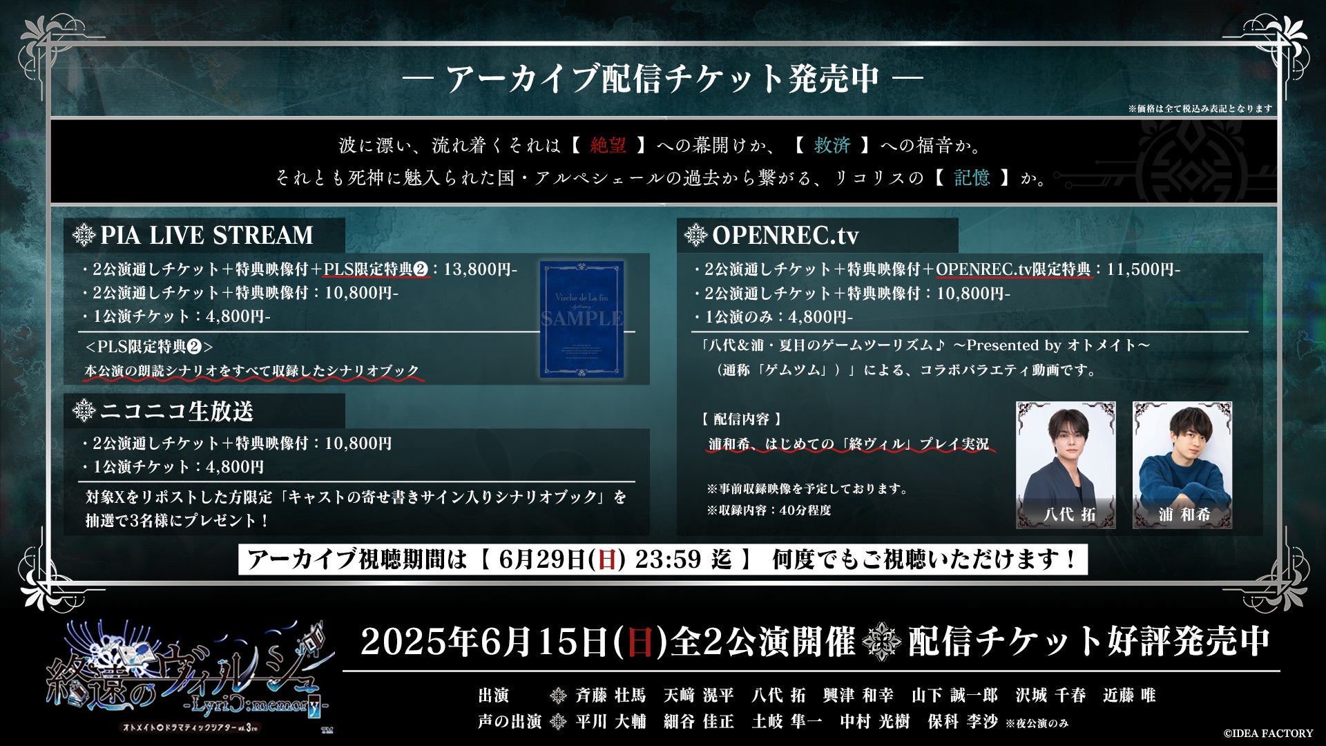 オトメイトドラマティックシアターvol.03re「終遠のヴィルシュ -LyriC:memory-」アーカイブ配信チケット好評発売中!豪華プレゼントが抽選で当たる終演後アンケートも実施中!