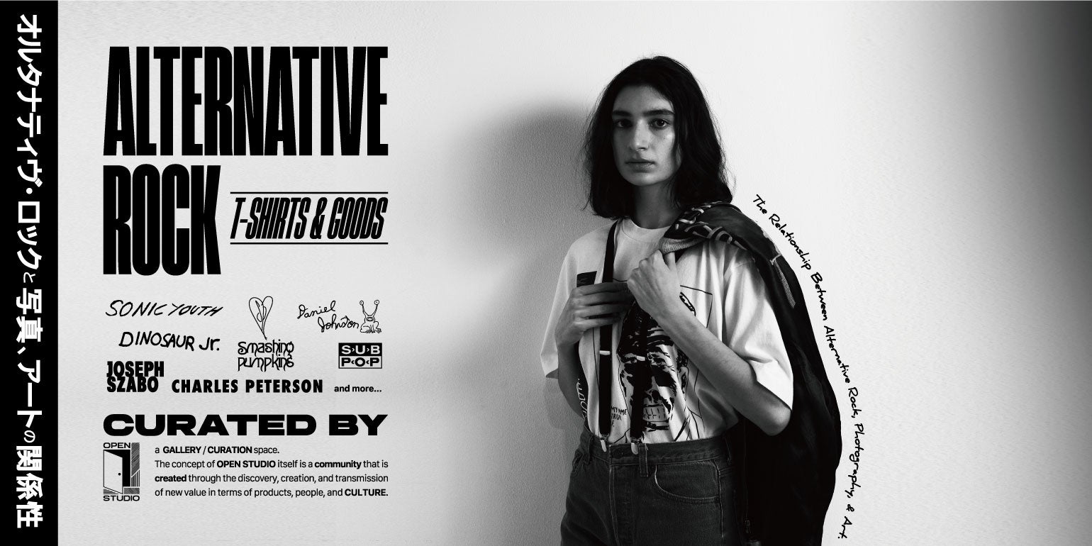 また、 FREAK’S STOREの旗艦店である渋谷店に併設されたギャラリー兼ポップアップスペース「OPEN STUDIO(オープンスタジオ)」では、 90年代を代表するオルタナティヴ・ロックと写真、アートの関係性を紐解きながら楽しめるTシャツとグッズのキュレーションイベントを今期も開催 します。