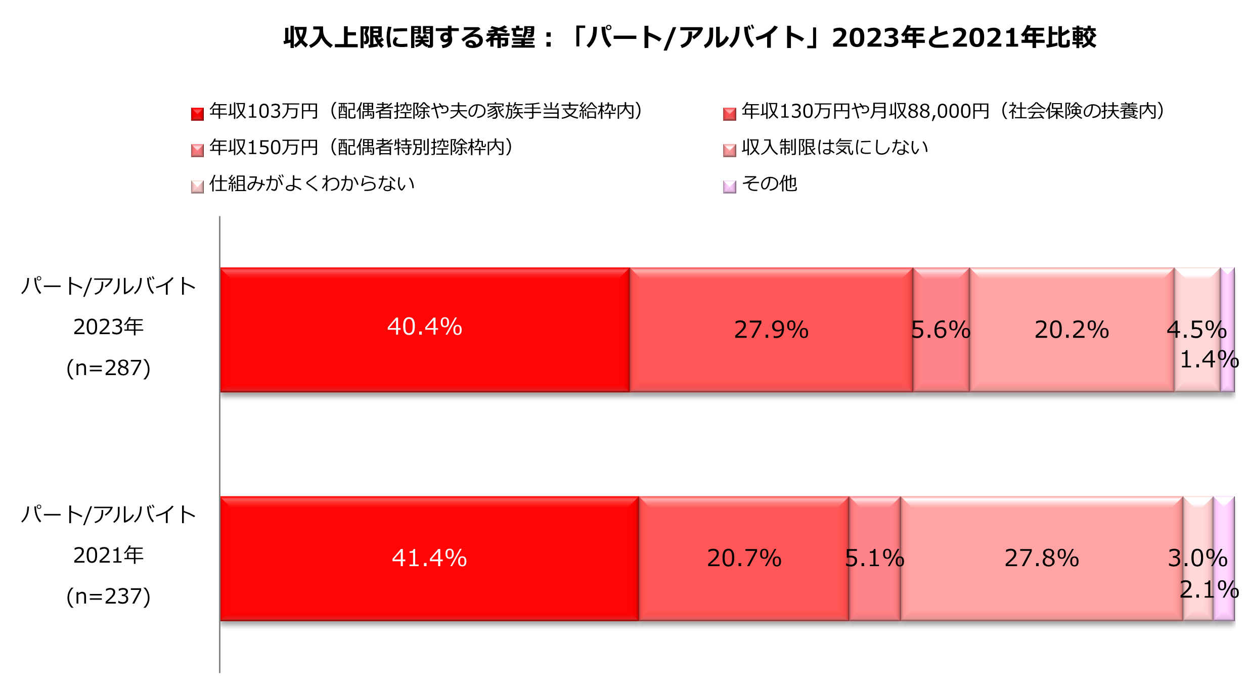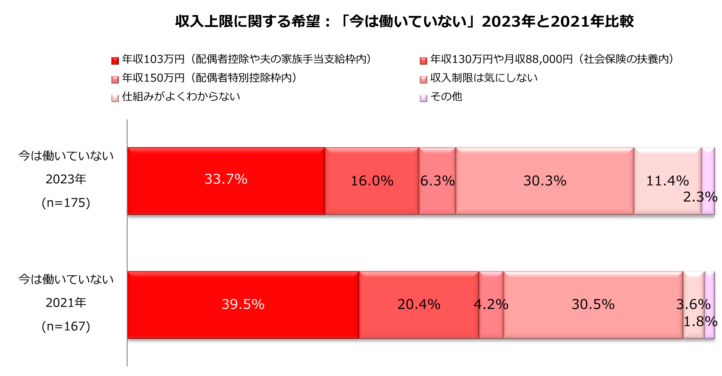 3.収入上限に関する希望:働き方別 2023年と2021年比較