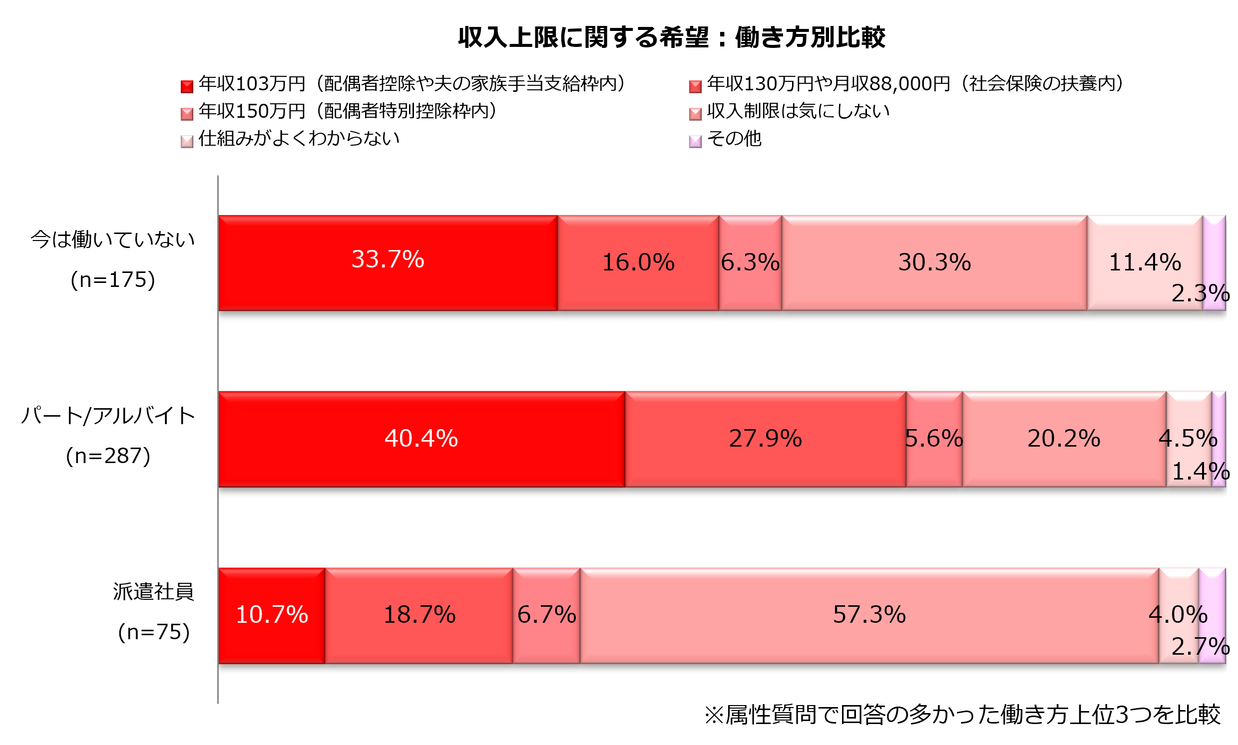 ・育児等、長時間の労働が難しい立場でも働きに出やすくなる制度だと思う(30代:年収103万円)