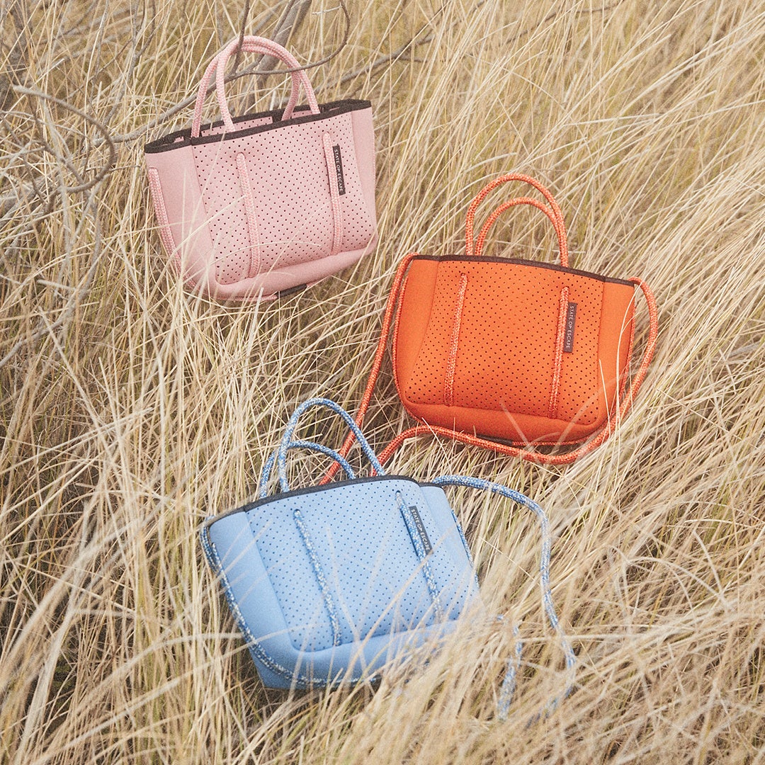 “ユニークでエッジーで、美しくデザイン性のあるキャリーオールを作る”というコンセプトのもと、軽量で肌あたりがとても柔らかく心地よいネオプリン素材を用いた色鮮やかで印象的なバッグは、今世界中から愛されています。今回のポップアップショップでは人気の定番ESCAPE, PETITE ESCAPEはもちろん、普段あまり見ることのできないアクセサリー感覚で使えるMicroが、新色とともにバリエーション豊富にラインナップします。
