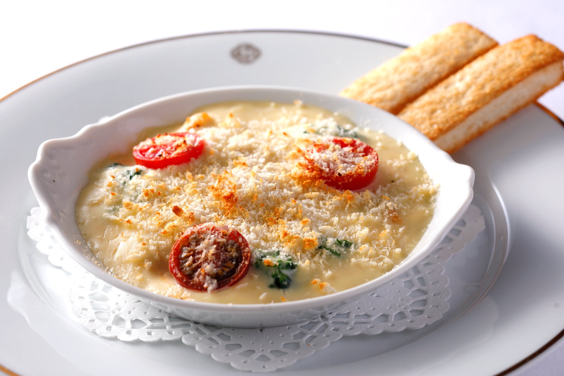 ◆白身魚とホウレン草のホワイトソースグラタン メルバトーストとともに 1,980円