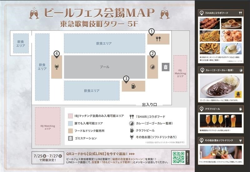 株式会社IBJ(代表取締役社長:石坂茂、本社:東京都新宿区、東証プライム:6071)が運営する「IBJ Matching」は、2025年5月30日(金)〜6月1日(日)の3日間、新宿「東急歌舞伎町タワー5階」にて、“都市型×屋内型”の次世代ビールフェスを開催します。 クラフトビールと絶品フードを堪能できる、ラグジュアリーでフォトジェニックな非日常空間。本日は、あいにくの雨予報ですが、本イベントは屋内開催のため天候を気にせず快適に楽しめるのが魅力。さらに、会場内の一部エリアでは独身者限定のマッチングイベントも同時開催。入場無料で、どなたでも気軽にご参加いただけます。