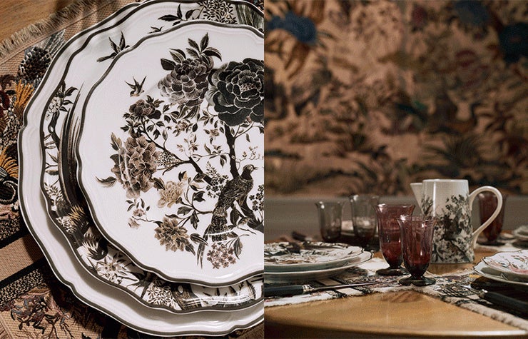 その美しさに共鳴するように、クレマチスやピオニー、ダリア、ツバメなどのモチーフがカラフェや磁器プレート、刺繍入りのプレースマットに優美に描かれています。刺繍があしらわれたクッションやノート、キャンドルは、ヘリテージとモダニティが融合するこのコレクションに合わせた色調でまとめられ、ムッシュ ディオールによって培われた情熱にオマージュを捧げます。「自分にそぐわない家に住むことは、他の誰かの服を着ているようなものだ」、メゾンの創設者であるクチュリエはこのように回想しています。