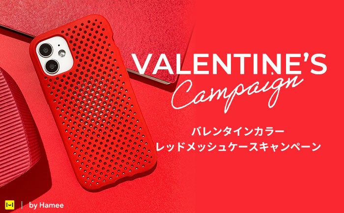 スマートフォングッズの商品開発、及び通販サイトを運営するHamee(ハミィ)株式会社(本社:神奈川県小田原市、代表取締役社長:水島育大、証券コード:東証一部 3134)は、シンプルながら個性的なデザインが特徴的な「AndMesh(アンドメッシュ)」の公式ブランドサイトにて、2022年2月8日(火)17時からバレンタインキャンペーンを実施します。「シンプルだけど個性的なアイテムをプレゼントしたい」という方にぴったりな、バレンタインカラーでメンズ人気の高いメッシュケースレッドを10%OFFで販売します。