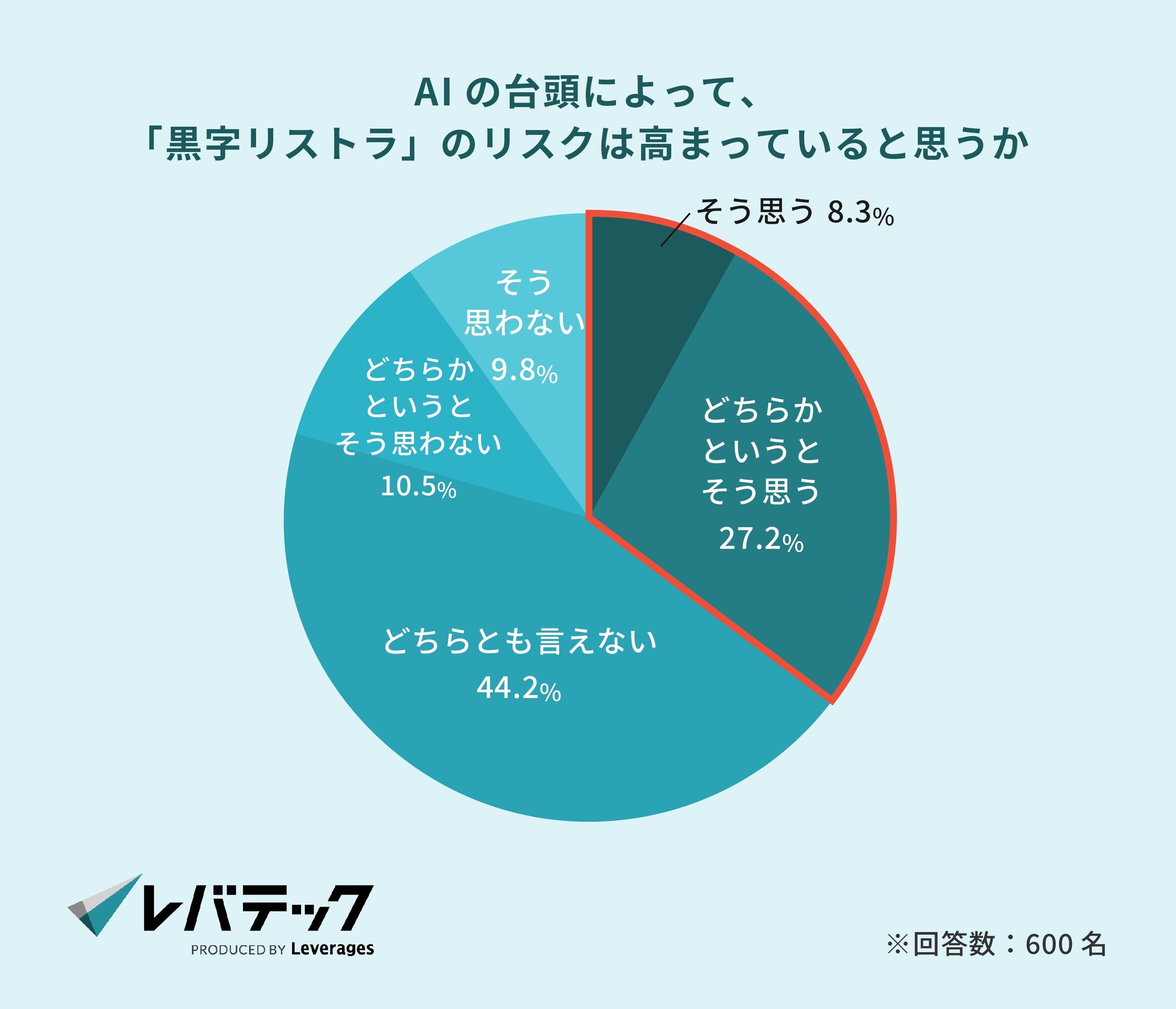 AIの台頭によって、黒字リストラのリスクは高まっていると思うかを聞いたところ、約3人に1人が「そう思う(8.3%)」「どちらかというとそう思う(27.2%)」と回答しました。