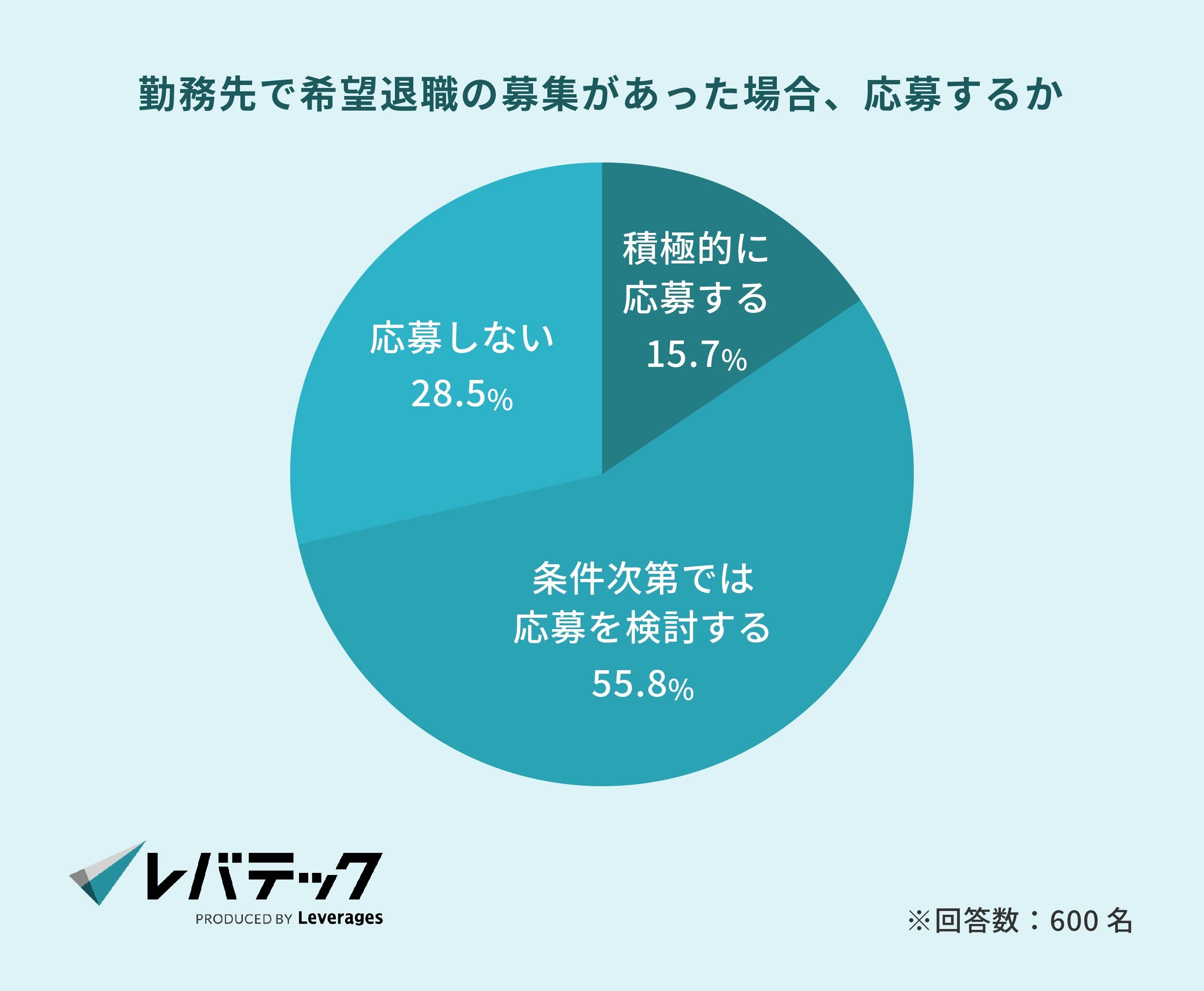 また、希望退職の募集があった場合については「積極的に応募する(15.7%)」「条件次第では応募を検討する(55.8%)」が7割を超えることが明らかになりました。