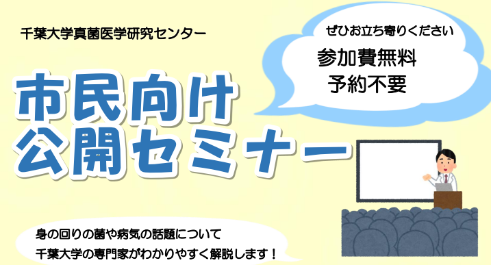 千葉大学真菌医学研究センター(センター長 笹川千尋、中央区亥鼻1-8-1 千葉大学亥鼻キャンパス内)では、今年度1回目の市民向け公開セミナーを開催します。