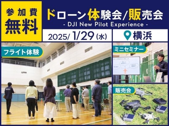 1月29日(水)に横浜で開催する無料ドローン体験会「DJI New Pilot Experience」では、DJI Flip を広い体育館で実際にフライトすることができます。AIによる手軽な空撮性能を試したうえでその場で購入、お持ち帰りいただくこともできますので、ぜひお気軽にご参加ください。
