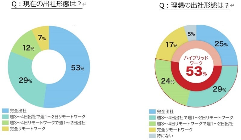 一方、50%以上が理想は「ハイブリッドワーク」と回答。