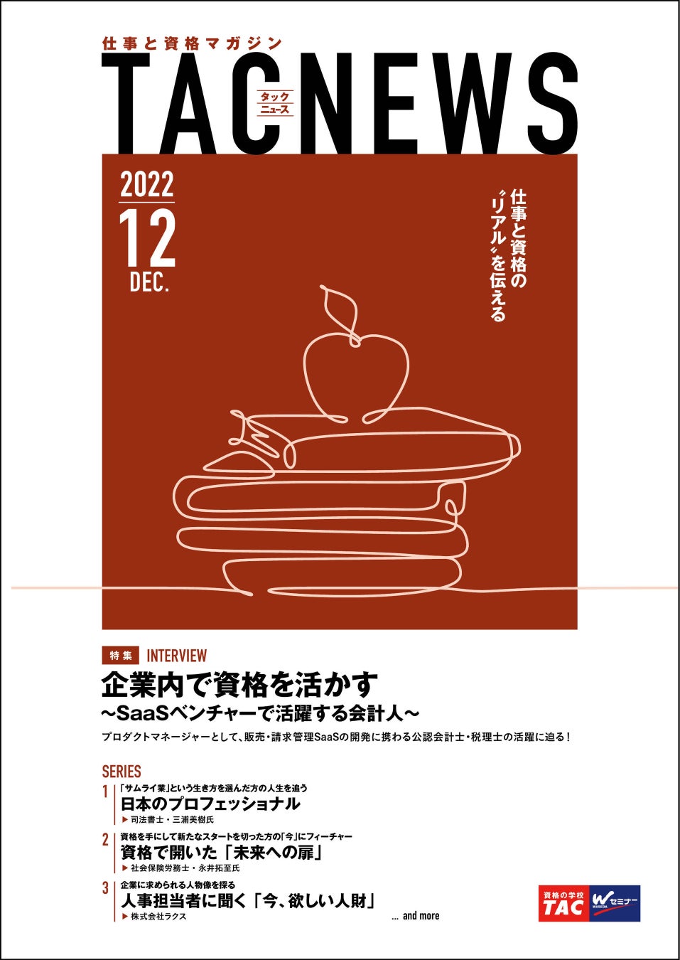 仕事と資格の”リアル”を伝える。『TACNEWS(タックニュース)』2022年12月号刊行