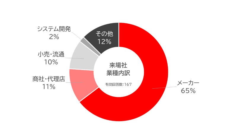 「メーカー」 が最も多く、来場社全体の65%を占める