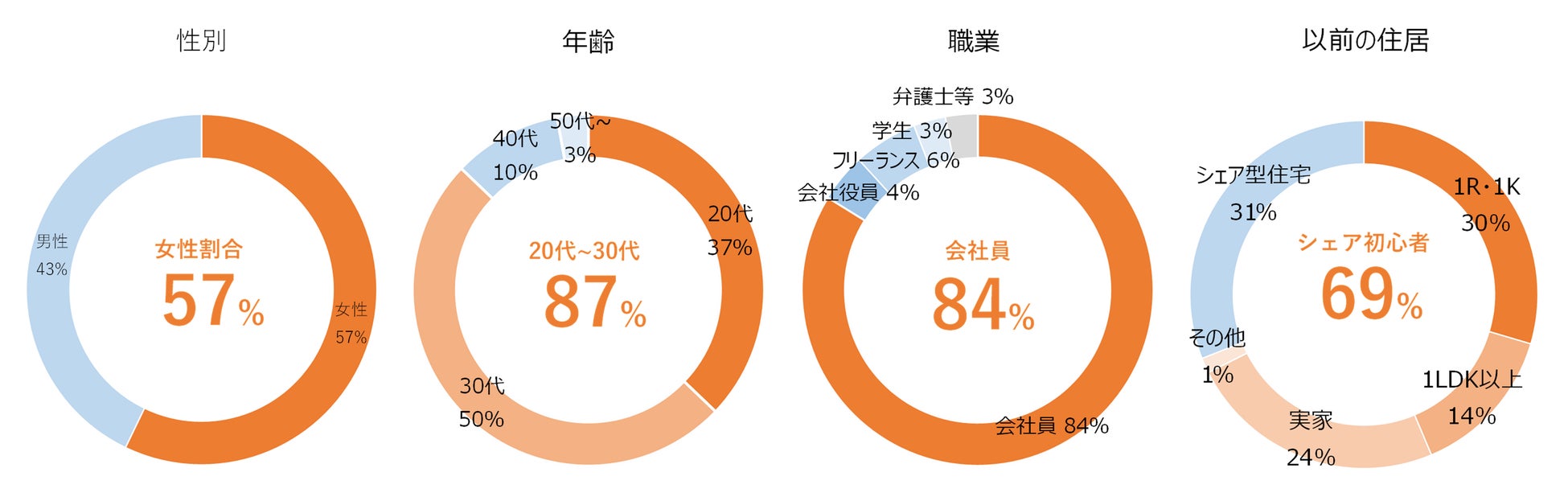 また入居者様全体の8 割以上が会社員、内約7 割が上場企業や大手外資系企業に勤務されています。従来の賃貸住宅ではなく、あえて「コリビング賃貸レジデンス」を選び、次世代のライフスタイルを実践する点も大きな特徴です。