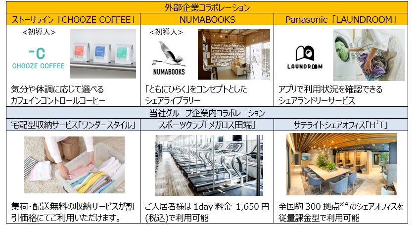 TOMORE では、入居者様の「職住快適性」と「交流快適性」を高めるべく、複数の外部パートナー様や当社グループ内企業とのサービス・コラボレーションを予定しています。