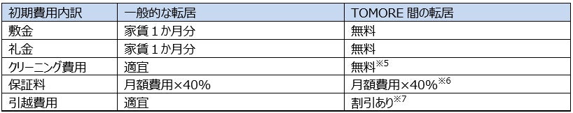 ※5:TOMOREに新規入居の場合、通常は退去時のクリーニング費66,000円が発生します。(家具付住戸の場合81,400円)