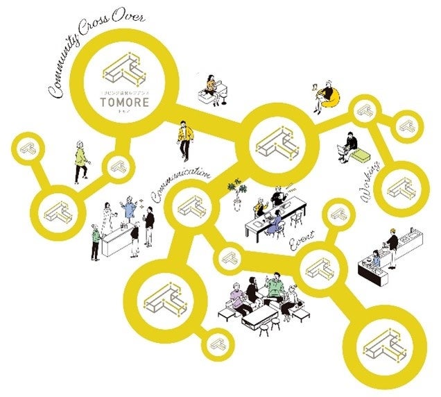 入居者様はご入居いただいている施設のみではなく、TOMORE シリーズ各施設のコワーキングラウンジを自由に相互利用いただけるようになります。これにより、各コワーキングラウンジで開催される各種イベントに参加可能となり、また現地運営スタッフが他拠点入居者様同士のコミュニティ形成をサポートすることで、拠点横断型のコミュニティが活性化され、TOMORE シリーズ全体での新たな生活体験を創出することを目指します。