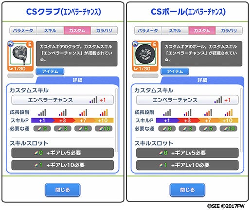 「スリングPメタリック」ギア(クラブ/ボール)搭載スキル: