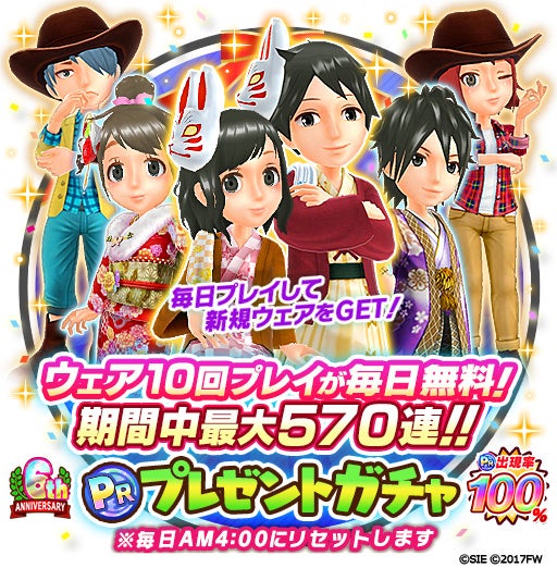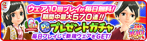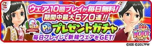 ■毎日「10回プレイ」が1回無料!期間最大570回分!「6周年PRプレゼントガチャ」開催!
