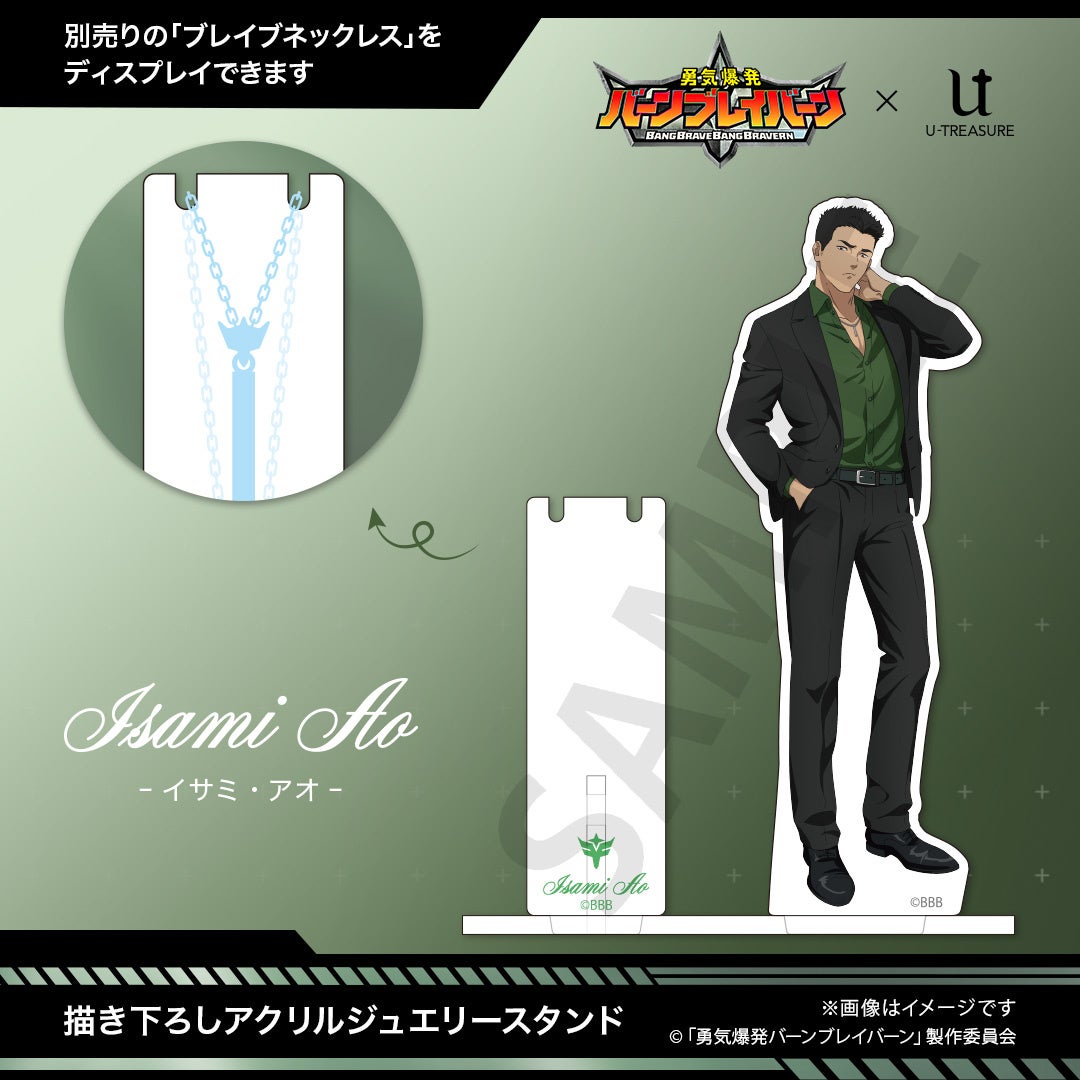 「勇気爆発バーンブレイバーン」描き下ろしアクリルジュエリースタンド。別売りの「ブレイブネックレス」をディスプレイできる仕様