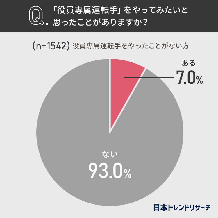 7%の方が、「役員専属運転手」をやってみたいと思ったことが「ある」と回答しました。