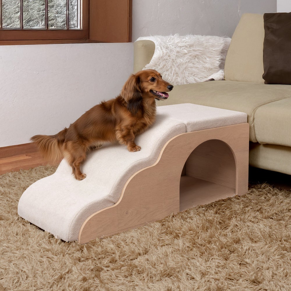 段差をやさしくサポートするスロープとしてはもちろん、下部のスペースは愛犬のくつろぎハウスとしても活用可能。