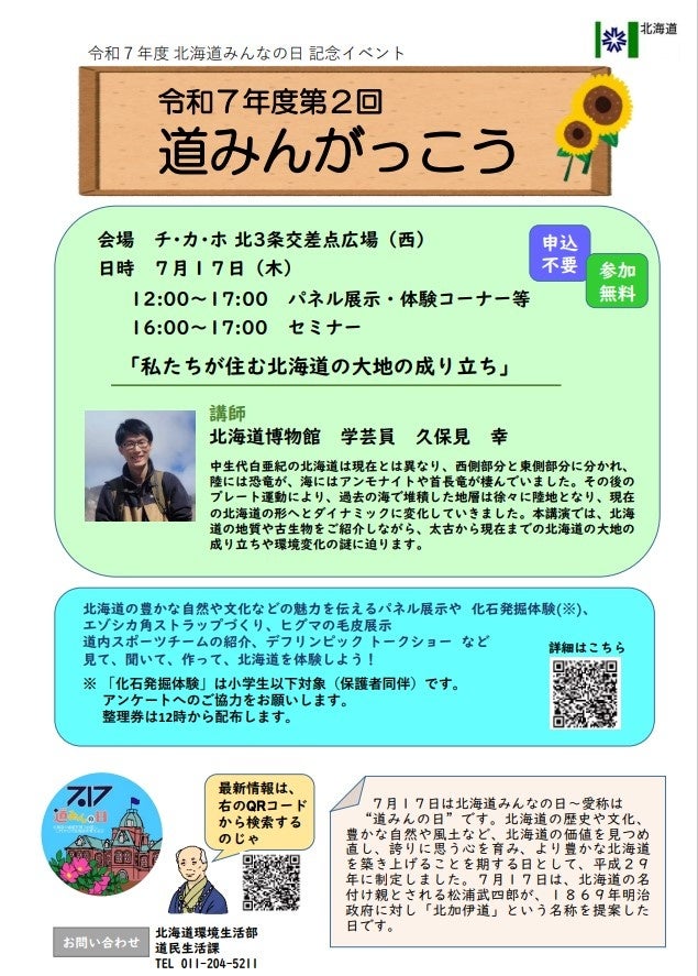 専門家を講師にお招きして、北海道の歴史や文化、自然や風土を分かりやすく解説するセミナー「道みんがっこう」(2回目)を開催します(※1回目は、令和7年6月24日に開催済み)