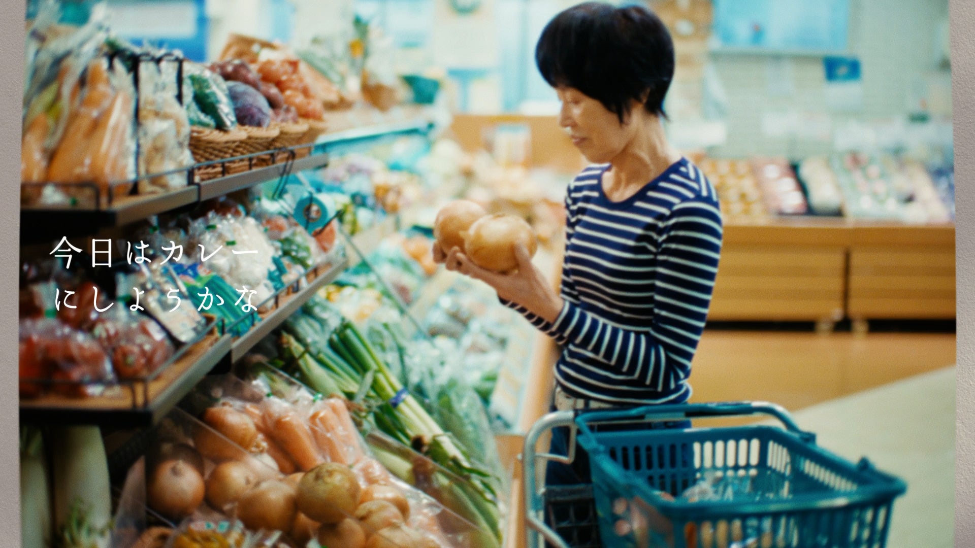 買い物をしている栗原さんの「今日はカレーにしようかなと思ったときから、私の幸せは始まります。」というセリフから始まり、パウダールウを使って、キッチンで楽しそうに料理をする栗原さん