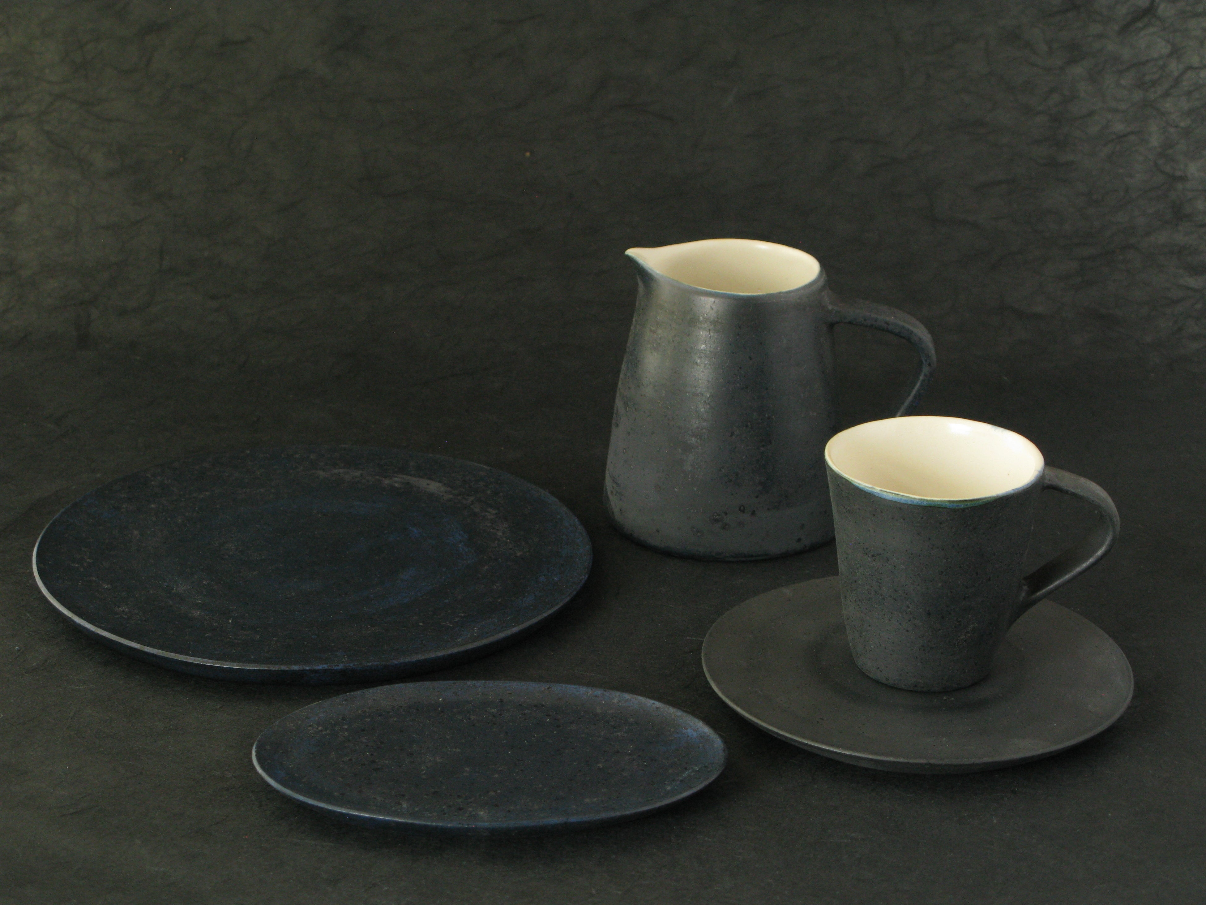 タタラ作りや手捻りで造形される作品とその色彩からは、八ヶ岳の麓から眺めた、星に照らされる夜空や暁の情景をも思わせます。
