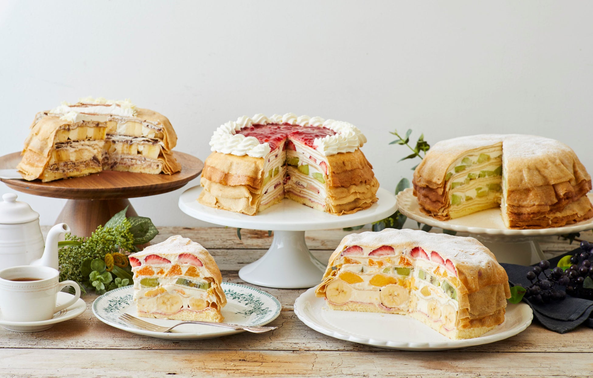 旬の苺をふんだんに使用し、ディプロマットクリームともちもち食感のクレープで5層に重ねました。