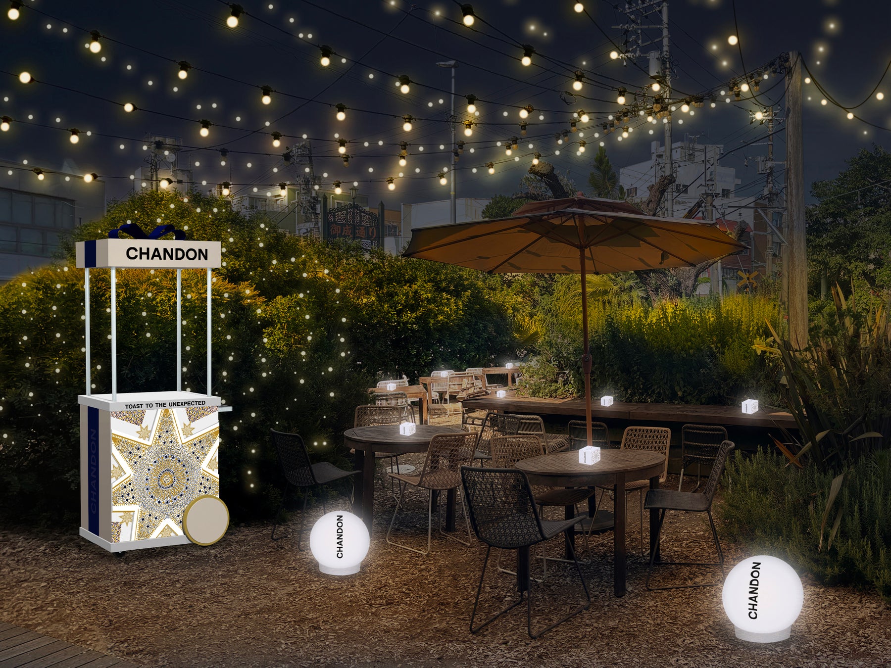 鎌倉の一軒家レストラン「AWkitchen GARDEN 鎌倉」では、星やギフトボックスをモチーフにデコレーションした煌びやかな空間で、「シャンドン ブリュット」「シャンドン ロゼ」をお楽しみいただけます。昼は柔らかな陽光につつまれ、夜はイルミネーションの輝きとともに、ホリデーシーズンを彩ります。また、IVY PLACEをはじめ、ウェスティンホテル東京やヒルトン東京ベイではホリデーの世界観を纏った特別演出を展開。さらに、スーパーマーケットや百貨店、酒類販売店では「シャンドン ブリュット」や「シャンドン ロゼ」をセットにしたオリジナルショッパーや、ホームパーティーを華やかに演出するグラスのセットなどを販売いたします。全国の主要百貨店・スーパーマーケットの一部店舗では、ホリデー限定の特設ディスプレイを設置しギフト選びの時間をより楽しく彩ります。また、店頭サンプリングも順次実施予定で、香りや口当たりを確かめながら、お好みの1本をお選びいただけます。