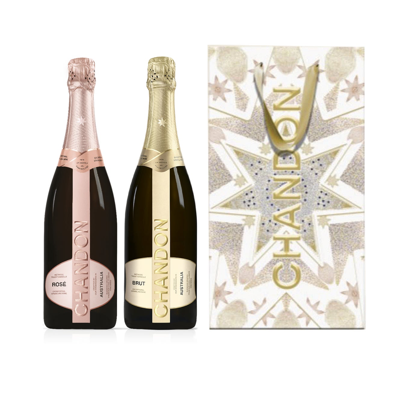 「シャンドン ブリュット」と「シャンドン ロゼ」を贅沢に味わえる限定セット。ホリデーシーズンをいっそう特別にするオリジナルショッパー付きです。