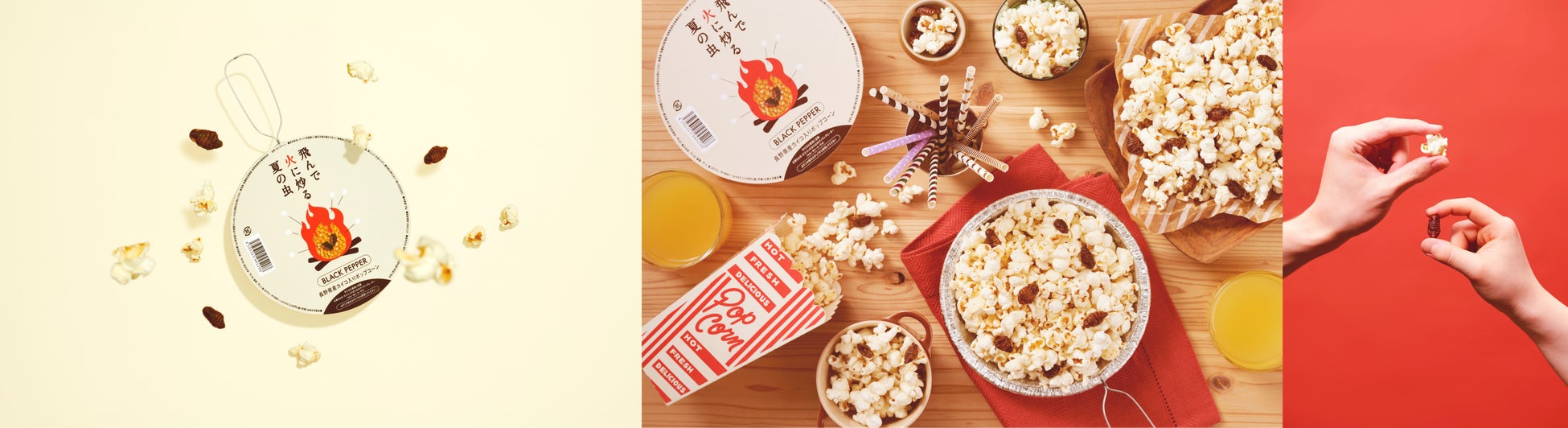 信濃毎日新聞と博報堂「CREATIVE TABLE最高」のコラボレーションにより開発昆虫食ポップコーン「飛んで火に炒る夏の虫」4月23日発売