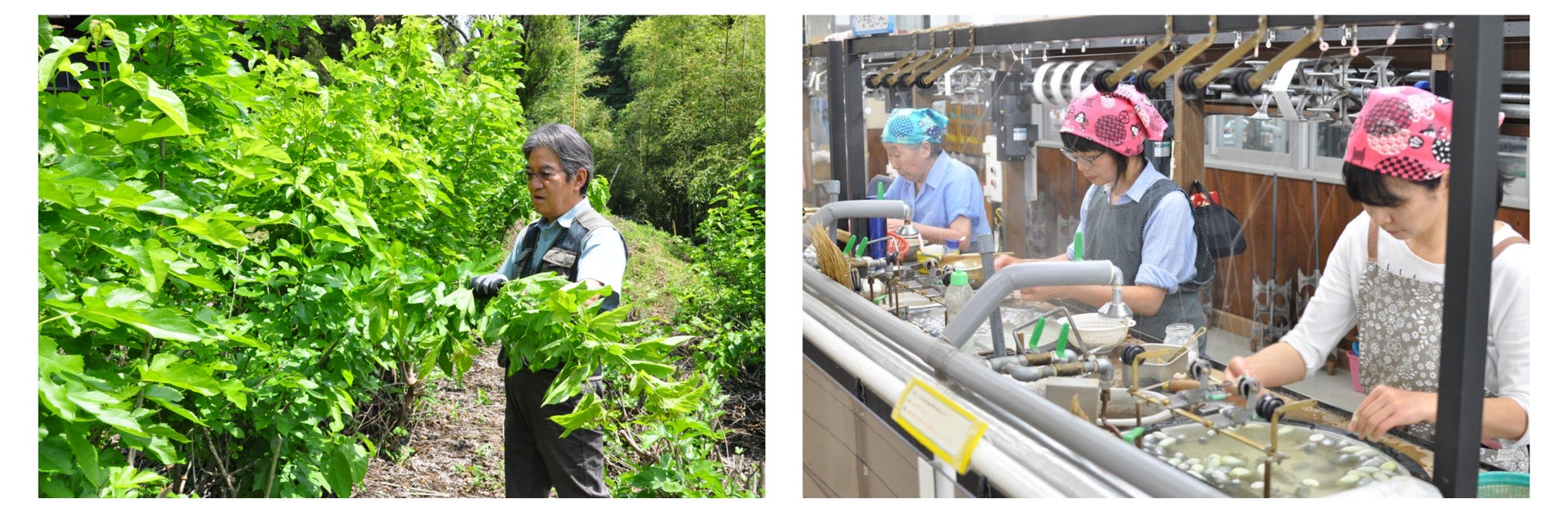 宮坂製糸所(岡谷蚕糸博物館内)のカイコを1商品あたり約15頭使用しています。