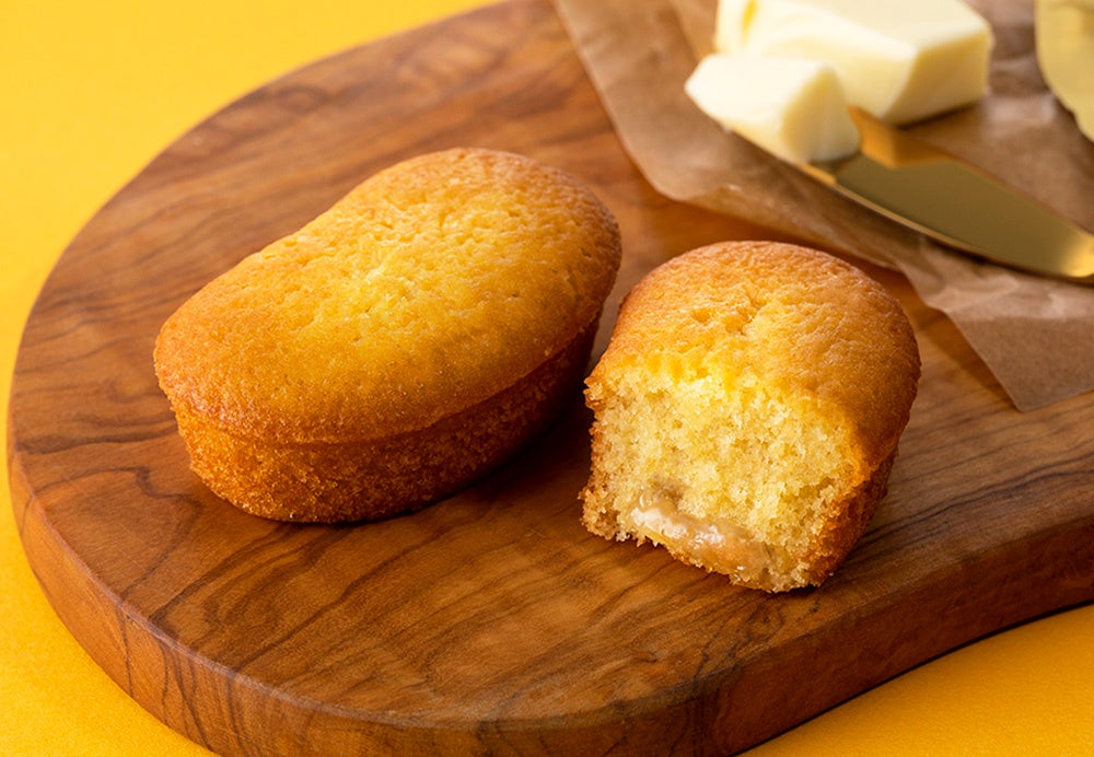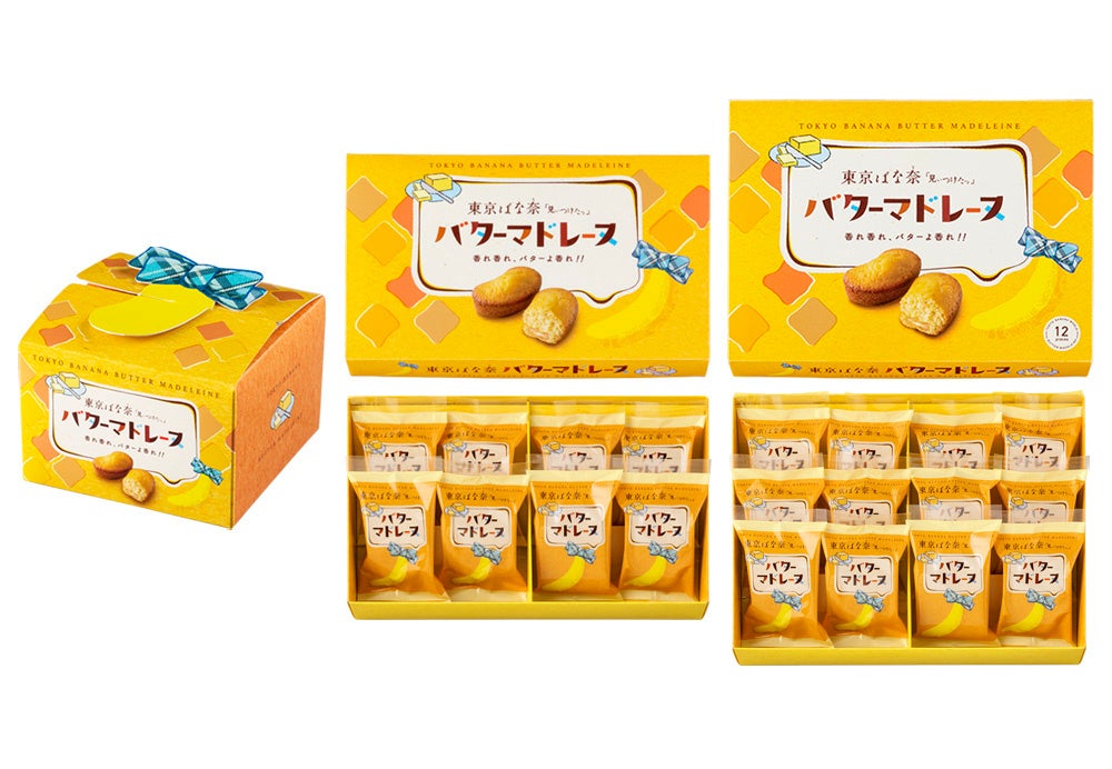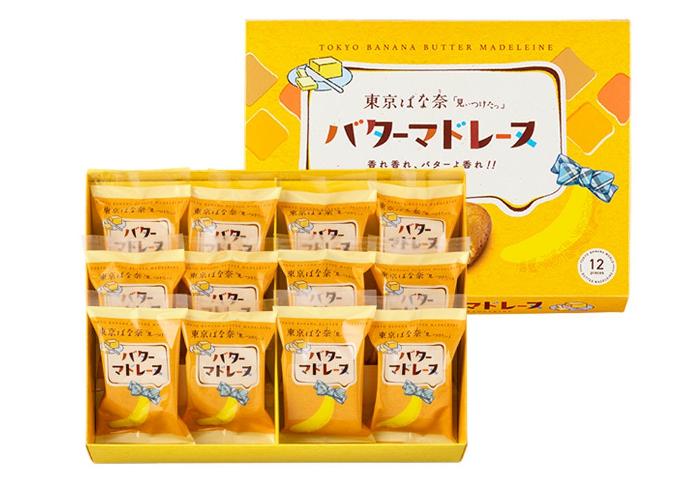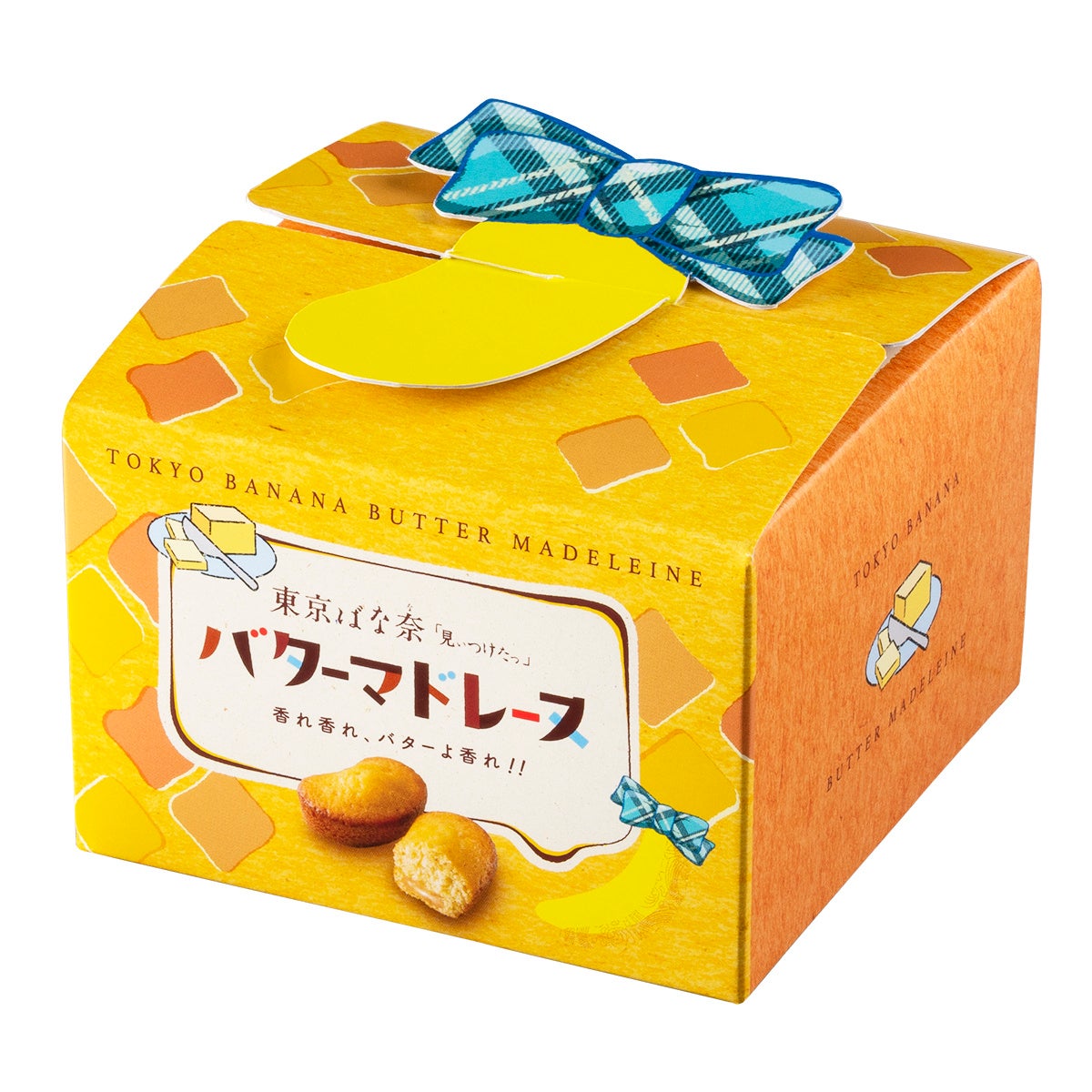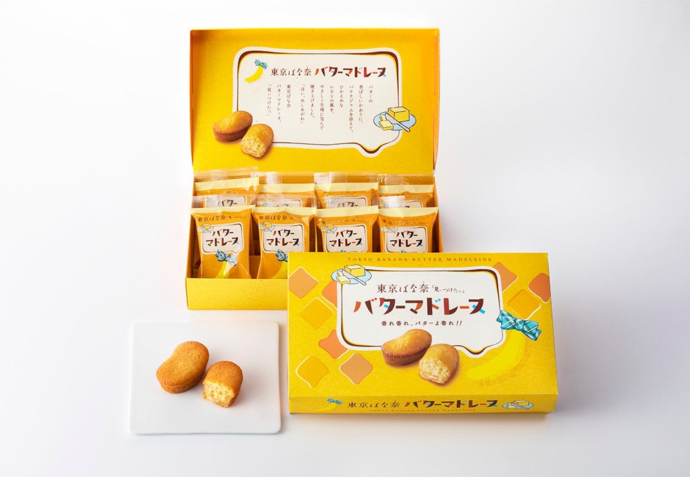 “香れ香れ、バターよ香れ!”をテーマに作り上げた『東京ばな奈バターマドレーヌ、「見ぃつけたっ」』。東京ばな奈ワールドのシンボルショップ「東京ばな奈の木」オープンを記念して、JR東京駅限定で待望の復活です。東京ばな奈ならではの優しいバナナ風味はそのままに、バターの香りいっぱいにしっとりと焼き上げました。中にはフルーティーなバナナコンフィチュールもとじこめて。 口いっぱいに広がるバターの香りに バナナの美味しさがとろけあう、とってもグルメなマドレーヌです。